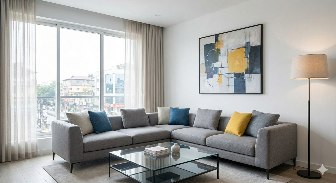 The image above showcases the kind of professional work you can achieve. This stunning, modern living room is a prime example of how our students learn to blend aesthetics with functionality, creating spaces that are both beautiful and livable. From the furniture selection to the art on the wall, every detail is carefully curated to create a cohesive and stylish environment.